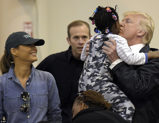Trong chuyến đi này, điểm đầu tiên mà vợ chồng Tổng thống Donald Trump đã ghé thăm là Sân vận động NRG tại Houston, nơi hàng nghìn người dân đang tập trung sau khi sơ tán khỏi những căn nhà ngập nước do bão Harvey gây ra vào đầu tuần.
