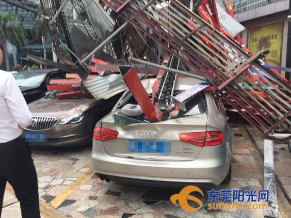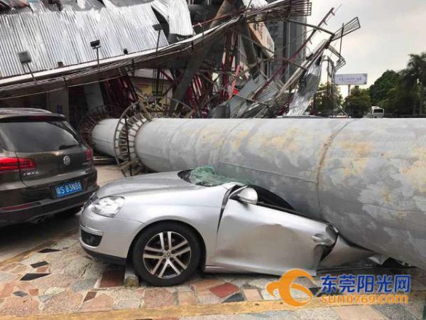 Theo Shanghaiist, cột quảng cáo bằng bê tông cốt thép khổng lồ bất ngờ đổ xuống khu vực đỗ xe bên ngoài một tòa cao ốc giữa lúc gió thổi mạnh, đè bẹp nhiều ôtô bên dưới. Trong khi, các tấm áp phích quảng cáo trên đỉnh cột vỡ tan tành.