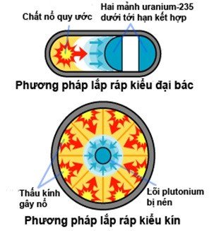 Hai cách kích nổ bom nguyên tử. (Ảnh: Wikipedia).