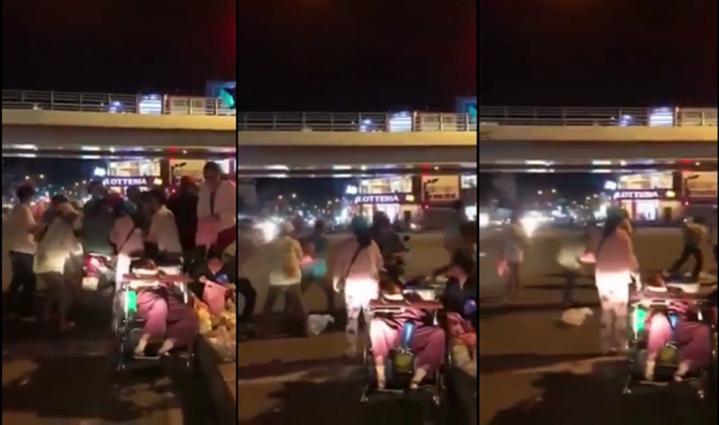 Người chia sẻ đoạn video này cho biết, sự việc xảy ra vào tối 5/9. Địa điểm xảy ra sự việc là ở ngã tư cầu vượt Cây Gõ (quận 6, TP.HCM).