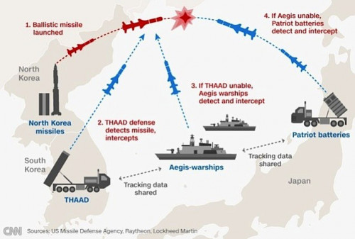 Nếu B́nh Nhưỡng quyết định khai mào tấn công trước bằng việc phóng bốn tên lửa đến vùng biển thuộc đảo Guam, lănh thổ ngoài khơi của Mỹ như tuyên bố trước đó cùng với việc bắn tên lửa nhằm vào Nhật Bản, Mỹ đă có giải pháp pḥng thủ ở một số vị trí.
