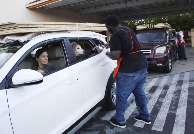 Beatriz Bustamante và chú chó Simon đứng trước cửa hàng The Home Depot ở phía bắc Miami, chờ nhân viên siêu thị chất lên xe các tấm ván ép. Như nhiều người dân Florida, Bustamante đang chuẩn bị đón cơn bão mãnh nhất ở Đại Tây Dương từng được ghi nhận trong lịch sử. Với sức gió gần 297km/h, mạnh hơn nhiều so với sức gió 210 km/giờ của bão Harvey mới đổ bộ vào Texas, bão Irma dự báo sẽ gây ra những cơn sóng cao hơn 3m, mang theo mưa lớn vàgây ngập lụt nặng tại những nơi nằm trong vùng ảnh hưởng của bão.