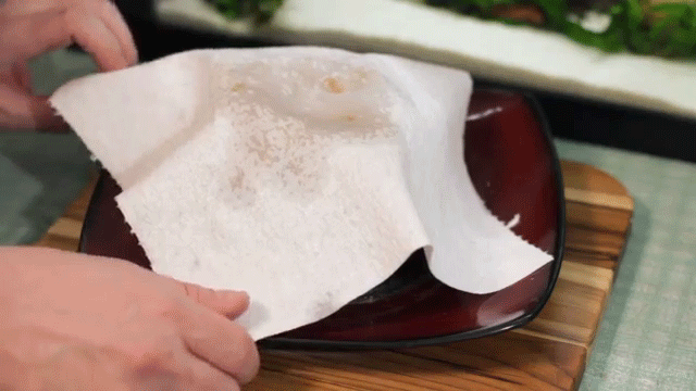 - Sau đó, bạn cho thịt vào lò vi sóng và dùng một miếng khăn giấy đậy phía trên thịt rồi quay trong vòng một phút. Miếng khăn giấy có tác dụng giúp phần mỡ từ thịt không bắn ra ngoài, đồng thời cũng giữ ẩm cho thịt không quá khô.