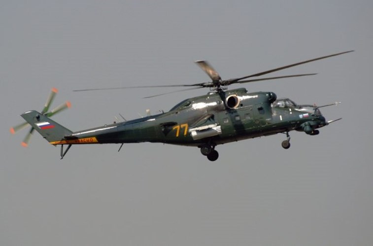Với tầm bay khoảng 450 km, tốc độ tối đa 335 km/h, Mi-24 là một trong những loại trực thăng tấn công được Nga sử dụng nhiều nhất trên chiến trường Syria. Tổng cộng chiếc trực thăng này có thẻ mang được 500 kg vũ khí các loại và chở theo được 8 lính trong khoang chứa của mình. Nguồn ảnh: Southfront.