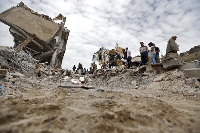Người dân Yemen tìm kiếm nạn nhân bị vùi lấp trong vụ không kích ở Sanaa.
