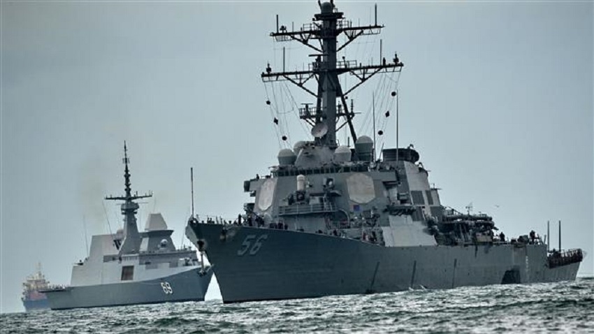 Tàu khu trục tên lửa dẫn đường USS John S McCain va chạm với tàu chở dầu, để lại một lỗ thủng trên thân tàu và được hộ tống về căn cứ hải quân Changi ở Singapore ngày 21-8