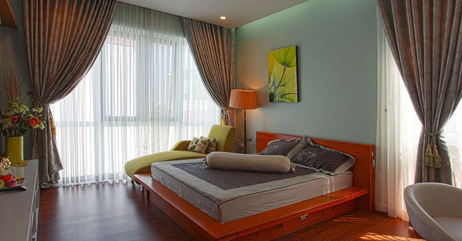 1 Phòng ngủ là nơi nghỉ ngơi do đó không nên có nhiều cửa sổ. Nếu là những căn chung cư, nhà đã có sẵn cửa thì nên dùng màn để điều chỉnh ánh sáng. Phòng ngủ không nên quá nhiều ánh sáng, dù là ánh sáng mặt trời hay của đèn, nên trang trí sao cho phòng có màu sắc hài hòa, dịu mát.