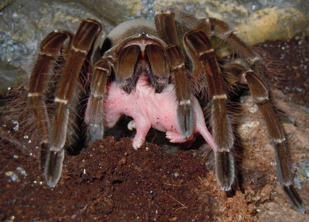 Nếu bạn là người sợ nhện, bạn ắt hẳn sẽ sợ phát chết nếu nhìn thấy con nhện khổng lồ này. Nó có tên khoa học là Goliath Birdeater, sở hữu kích thước đáng sợ cùng tuyệt chiêu bắt mồi cực nhanh. Cụ thể, cảnh bắt mồi của con nhện này khiến người xem phải phát hoảng.