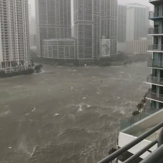 Matthew Spuler, người đã ghi nhận được tình hình mưa bão cùng những cơn gió giật mạnh từ 1 tòa nhà cao tầng ở Miami, đã chia sẻ đoạn video cùng hình ảnh cho thấy những con đường ngập trong biển nước. Từ đoạn video có thể thấy những đợt sóng cuồn cuộn vô cùng đáng sợ.