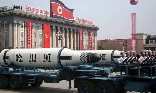 Tên lửa Triều Tiên trong một cuộc diễu hành ở thủ đô Bình Nhưỡng