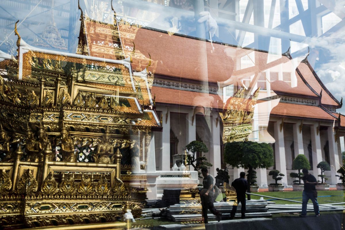 Một phần Bảo tàng quốc gia Bangkok biến thành khu vực chuẩn bị cho tang lễ. - Ảnh: Bloomberg