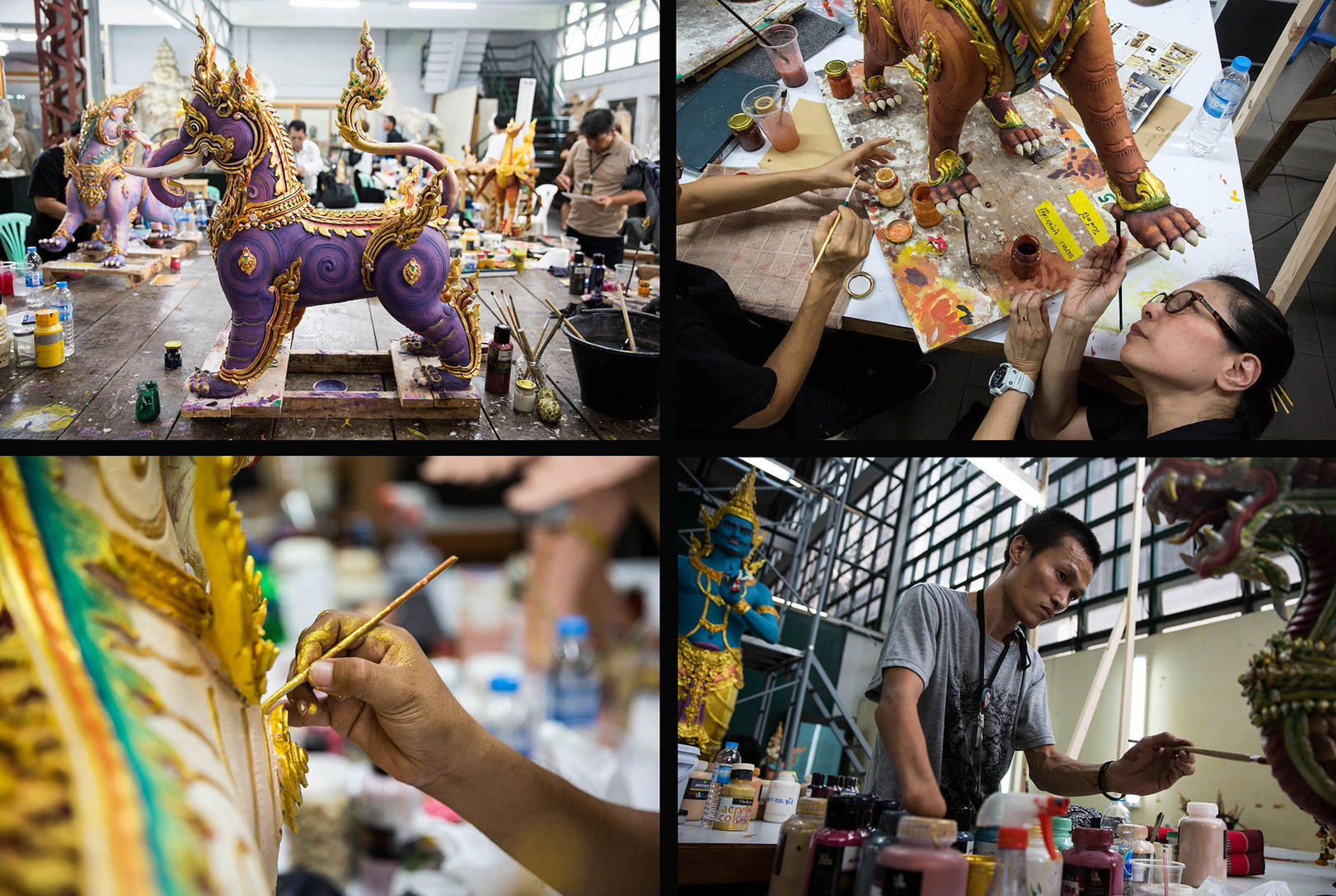 Các nghệ nhân chuẩn bị hàng trăm bức tượng, công trình rất công phu cho tang lễ - Ảnh: Bloomberg