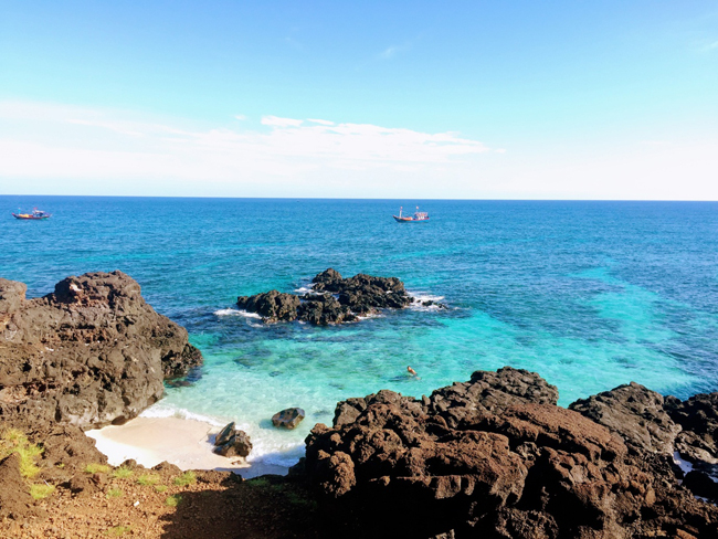 Bãi biển tuyệt đẹp với cát trắng, biển xanh, nước biển trong vắt nhìn thấu đáy là những gì bạn sẽ nhận thấy ở Đảo Bé – thuộc huyện đảo Lý Sơn Việt Nam.