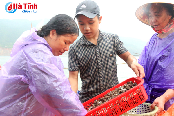 Chị Trần Thị Nga, xã Thạch Bằng cho biết: “Vui lắm, chả mấy khi trúng đậm mẻ sò lớn. Thuyền chưa cập bến, thương lái đã cho xe tải túc trực chờ thu mua toàn bộ với giá 3 đến 5 nghìn/kg.”
