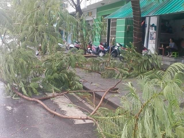 Ghi nhận của PV tại TP.Huế cho thấy, đến gần 18h ngày 14/9 mưa, gió bắt đầu lớn dần, một số cây xanh ở các con đường trong thành phố đã gãy đổ, giao thông đi lại gặp nhiều khó khăn do mưa to vào đúng giờ cao điểm.