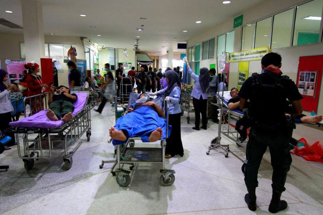 Các binh sĩ Thái Lan được cấp cứu trong bệnh viện sau vụ tấn công. (Ảnh: Reuters)