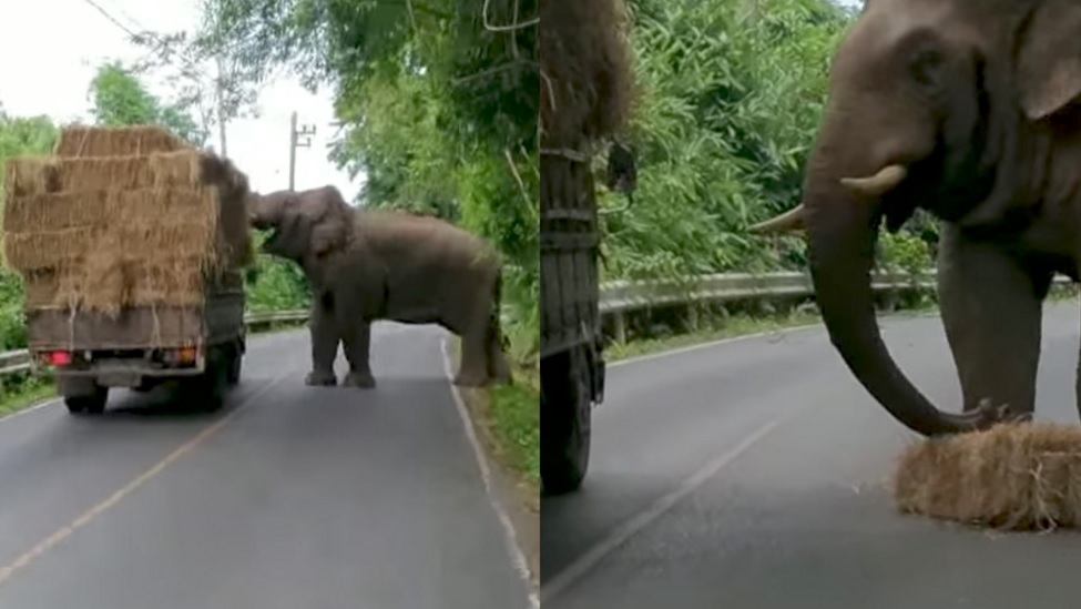 Khi thấy một xe tải chở rơm đi qua Vườn quốc gia Khao Yai, Thái Lan, một con voi đã không để lỡ cơ hội kiếm ăn.