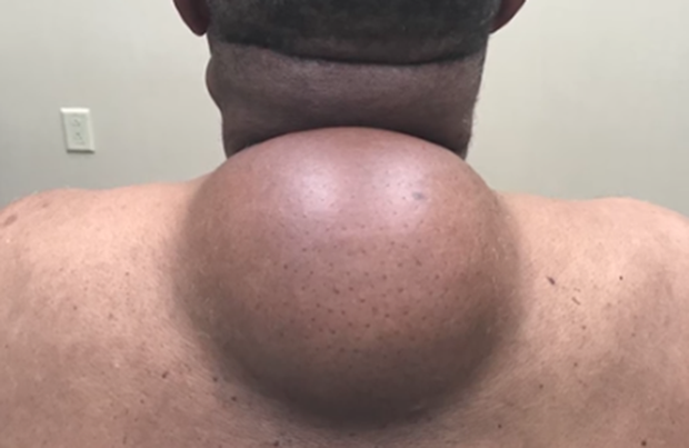 Nốt mụn lớn mọc đằng sau lưng người đàn ông thực chất là khối u mỡ.