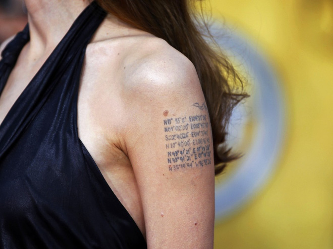 Nữ minh tinh xăm mình tọa độ nơi sinh của tất cả những người con của cô- trong đó có Pax Thiên