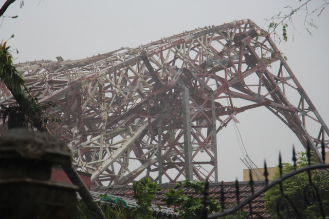 Thị xã Kỳ Anh dường như tan hoang sau khi bão số 10 đổ bộ vào. Ghi nhận của PV Dân trí lúc 15h, bão quét qua khiến nhà cửa, cây cối, cột điện... đổ gãy ngổn ngang. Khung cảnh tan hoang.