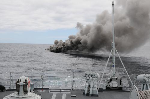 Bom khói trong cuộc tập trận hải quân chung của Nga - Trung. Ảnh: THX/TTXVN