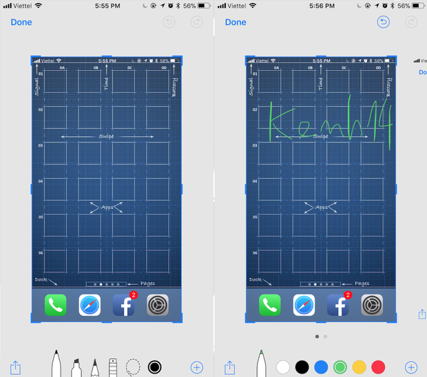 Giờ đây khi chụp màn hình, một ảnh thu nhỏ của nó sẽ xuất hiện ở cạnh dưới bên trái. Người dùng có thể nhấn vào phần ảnh này để vẽ vời hoặc chú thích lên đó trước khi lưu vào máy.