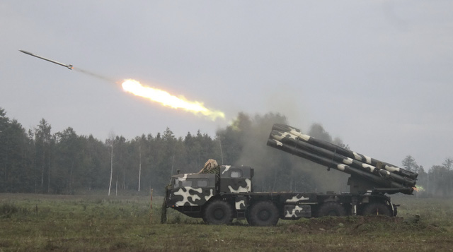 Dàn phóng rocket của Nga trong cuộc tập trận - Ảnh: REUTERS