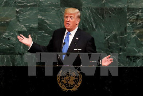 Tổng thống Mỹ Donald Trump phát biểu tại Khóa họp thứ 72 Đại hội đồng Liên hợp quốc ở New York (Mỹ) ngày 19/9. (Nguồn: THX/TTXVN)