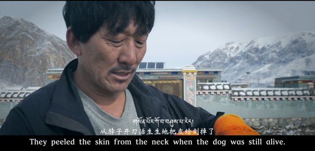 Người này đang giữ khoảng 60 con chó ngao cái khi Samdrup ghé thăm ông ta ở Lan Châu sau đó. Một cách "tỉnh bơ", ông này nói với Samdrup hầu hết những con chó ông ta nuôi là để giết thịt, chỉ trừ một số con giống tốt.