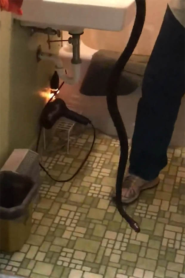 Anh bắt đầu thò tay xuống và kéo ra một… con rắn. Lúc đầu, con rắn đen đáng sợ có vẻ như không muốn di chuyển. Nhưng sau vài lần kéo mạnh, cuối cùng thanh niên cũng kéo được con vật kinh dị ra khỏi toilet, theo Daily Star.