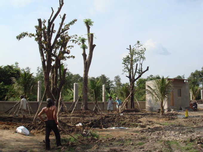 Mảnh đất vợ chồng chị Tiên mua trước đây là vùng đầm lầy, cây cối mọc um tùm như rừng rậm. Vợ chồng chị Tiên phải thuê người chặt cây, bơm cát, san lấp rồi đổ đất đen lên bề mặt. Chị Tiên còn tự tay thiết kế và quy hoạch rõ ràng theo từng khu: Cây ăn trái, cây cảnh, vườn rau và khu nhà tạm. Ngoài đất trồng cây, vợ chồng chị cũng để trống phần đất rộng dành xây biệt thự và bể bơi. Sau khi nghỉ hưu, cả gia đình sẽ chuyển về đây sống.