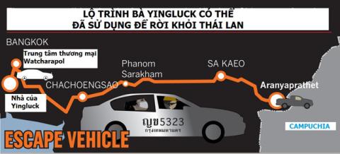 Con đường chạy trốn của bà Yingluck với sự hỗ trợ của vị cảnh sát Bangkok.