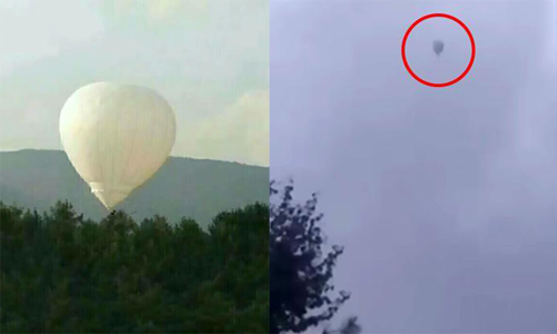 Khinh khí cầu ông Bi sử dụng lúc làm việc được phát hiện bay dọc biên giới Triều Tiên.