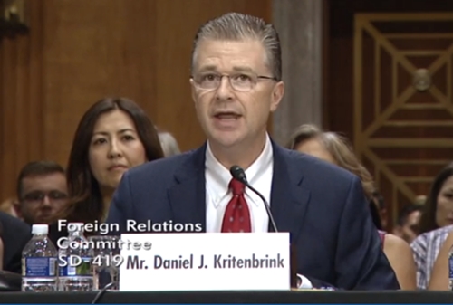 Ông Daniel J. Kritenbrink trong buổi điều trần