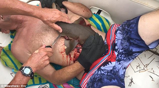 Ngay cả khi đã được đưa lên khỏi mặt nước, con cá mập nhỏ vẫn cắn chặt hàm răng của mình vào bụng ông Ervin. Trong cơn đau quằn quại, cuối cùng, những người bạn của ông Ervin đã phải dùng dao đâm chết con cá mập để giải cứu cho người đàn ông này.