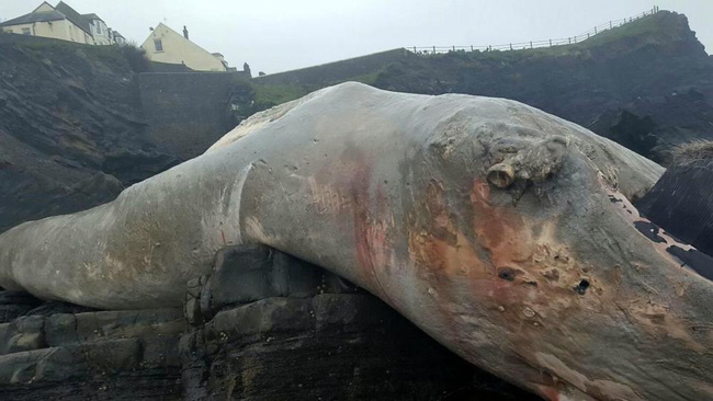 Tháng 3 vừa qua, người dân ở gần Hartland Quay, hạt Devon, phía Tây nam nước Anh được phen xôn xao vì một con vật khổng lồ dài đến 9m không biết từ đâu xuất hiện trên bờ biển.