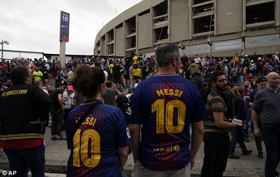 Cổ động viên Barcelona chờ đợi ở ngoài sân