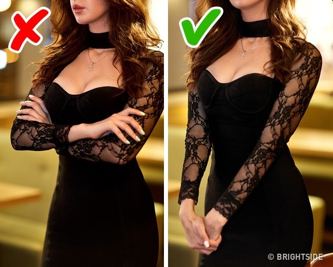 Hãy chú ý tới cách nàng nắm tay. Nếu thấy nàng có tư thế đóng với hai tay đan chéo trước ngực, bạn đừng vội lo vì đôi khi cô gái ấy cảm thấy e thẹn và chưa sẵn sàng cởi mở với bạn. Trong trường hợp thấy hai tay nàng duỗi thẳng, bạn có thể yên tâm vì đó là tín hiệu của "đèn xanh".