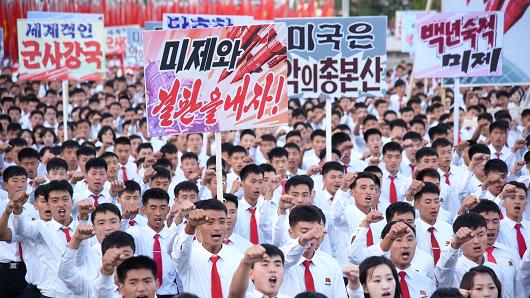 Người Triều Tiên đổ ra đường ở thủ đô Bình Nhưỡng, hưởng ứng lời kêu gọi chống Mỹ.
