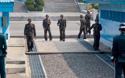 Lính Hàn Quốc và Triều Tiên đứng gác ở khu phi quân sự (DMZ) giữa hai miền.