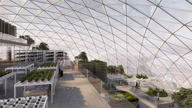 Dự kiến, thành phố sẽ có diện tích lên tới 175 ngàn m2 bao gồm rất nhiều tòa nhà có cấu trúc mái vòm khổng lồ.