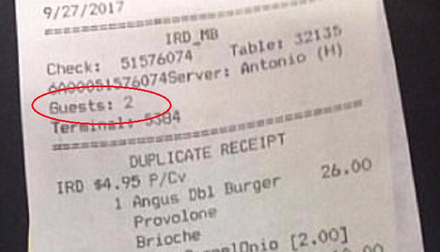 Tờ hóa đơn gây tranh cãi. (Ảnh: Dailymail)