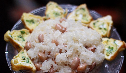 Khi xôi lạc chín, bạn dùng thìa xới xôi ra đĩa, ăn kèm trứng chiên, muối vừng, chả kho hoặc ruốc thịt đều rất ngon. Món xôi lạc có vị dẻo của nếp cái hoa vàng, vị bùi bùi của lạc, của mỡ gà và mùi thơm của nước dừa. Cách nấu xôi lạc ngon bằng nồi cơm điện vừa ngon vừa đơn giản phải không? Thỉnh thoảng hãy đổi vị cho bữa sáng bằng xôi lạc và các món xôi khác để cả nhà có được bữa ăn chắc bụng nhé.