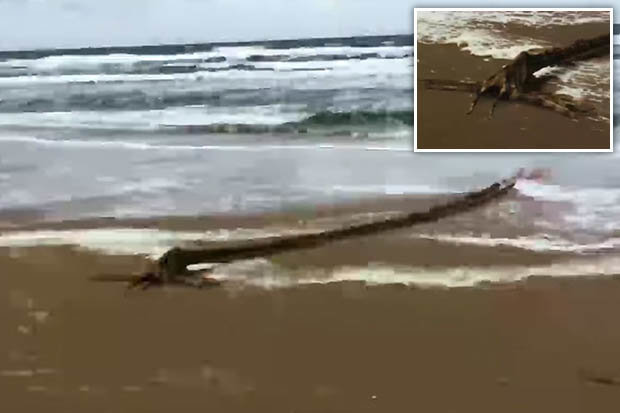 Trong một video quay ngày 5.10, một sinh vật bí ẩn được nhìn thấy nằm trải dài trên cát.