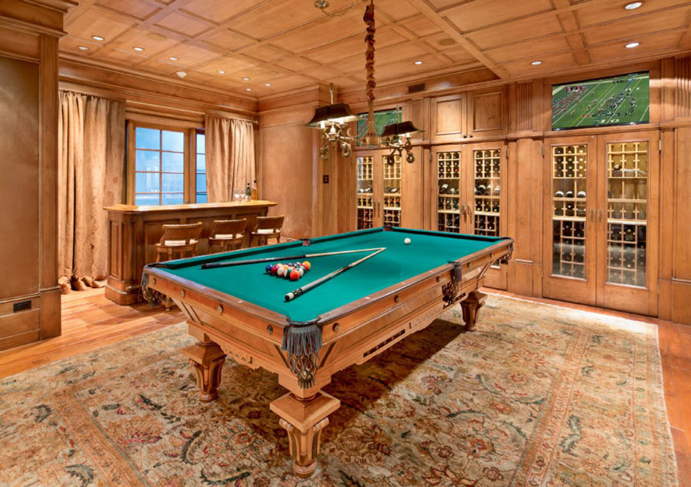 Pḥng chơi bi-a có quầy bar nối thông với hầm chứa rượu.