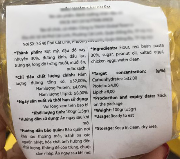Thông tin về sản phẩm in trên mỗi chiếc bánh