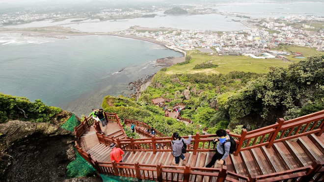 Một vài khách du lịch Trung Quốc leo cầu thang ở đảo Jeju, Hàn Quốc (Ảnh: Handout)