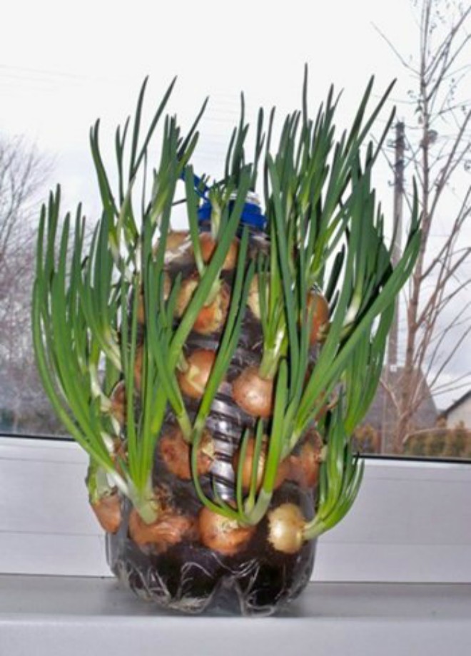 Tưới nước bằng cách phun sương và đặt bình ở nơi có nhiều ánh sáng, chỉ sau 1 tuần, bạn đã có thể thu hoạch hành lá rồi.