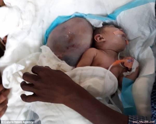 Bé Babu (2 tháng tuổi, Ấn Độ) sinh ra với đầu dẹt và một túi ở cổ do dị tật hiếm gặp Encephalocele (thoát vị não) khiến não phát triển ngoài hộp sọ. Cha mẹ của Babu cho biết các bác sĩ không có cách gì để cứu chữa cho em.
