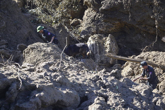 Từ mờ sáng, trời vẫn mưa như trút nước. Dưới con thác Khanh cao hơn 200 m đang dữ dằn gầm thét, lực lượng cứu hộ nỗ lực đào bới để tìm kiếm 18 người bị hàng nghìn tấn đất đá vùi lấp.